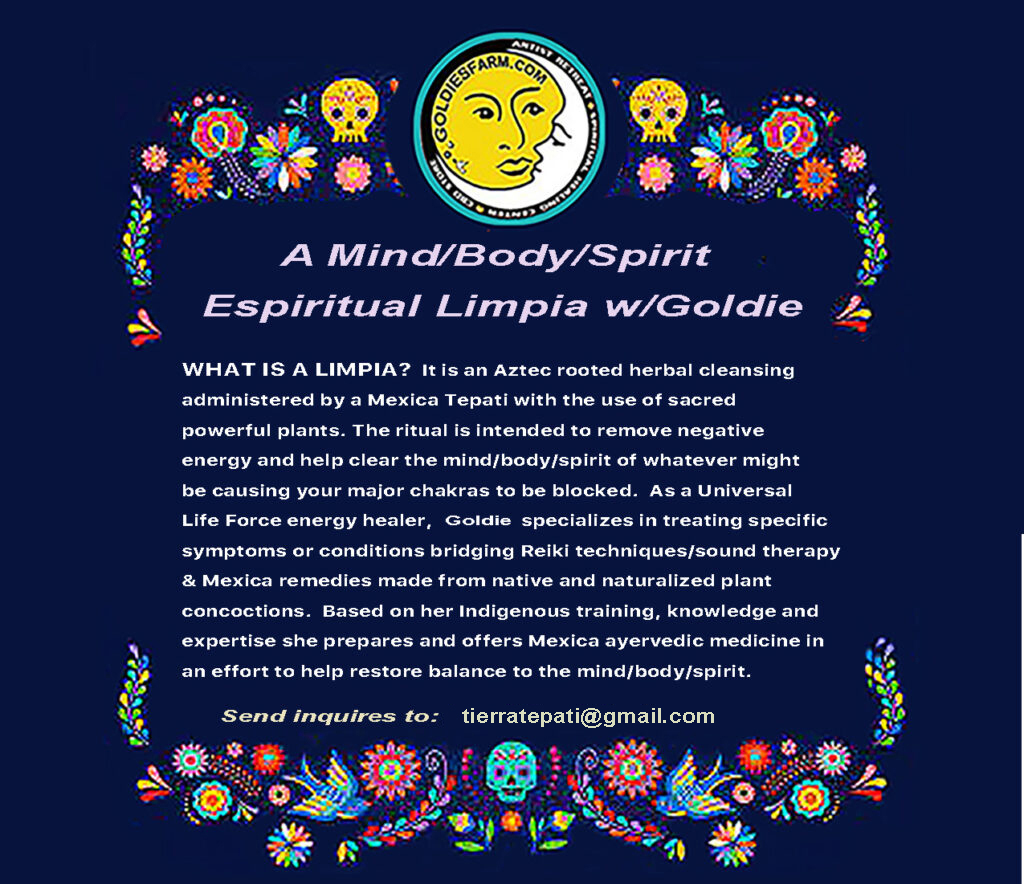 If you or someone you know is interested in scheduling a limpia simply send an email message to Goldie at tierratepati@gmail.com.